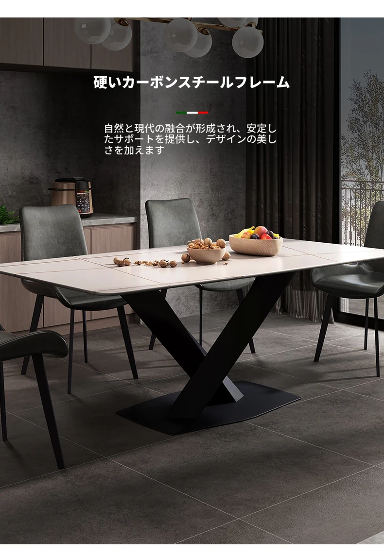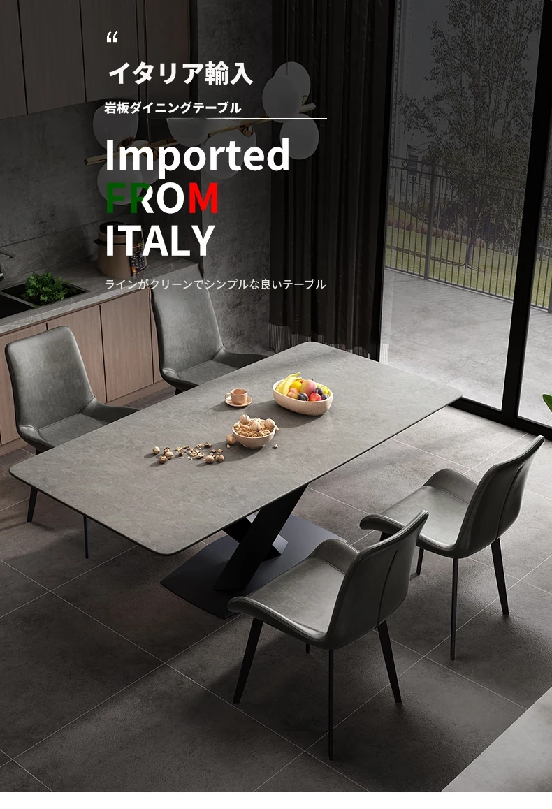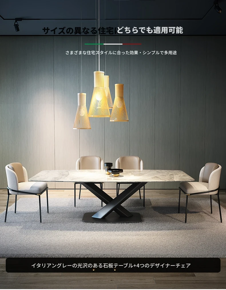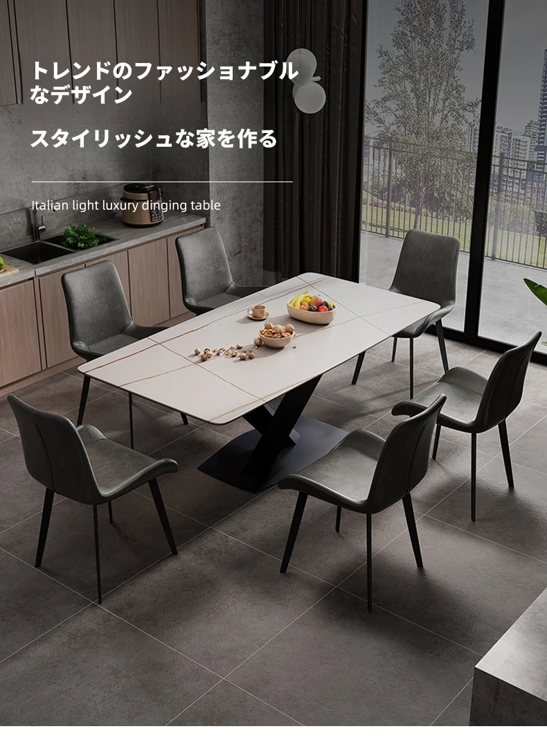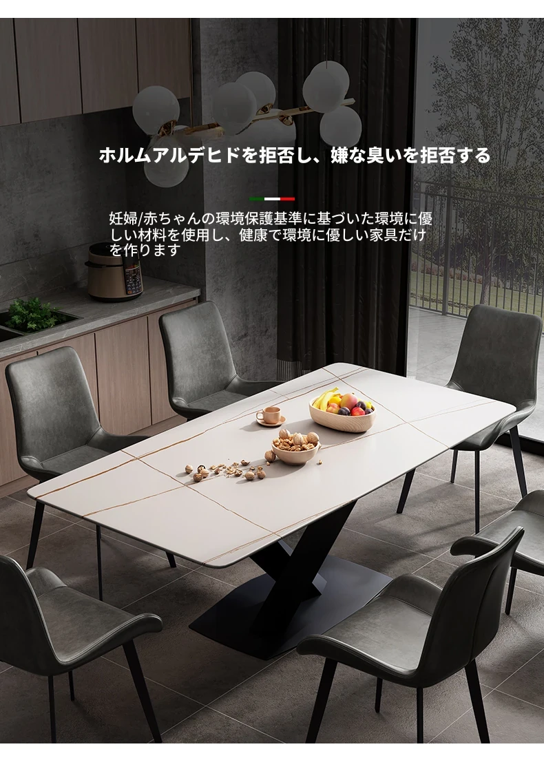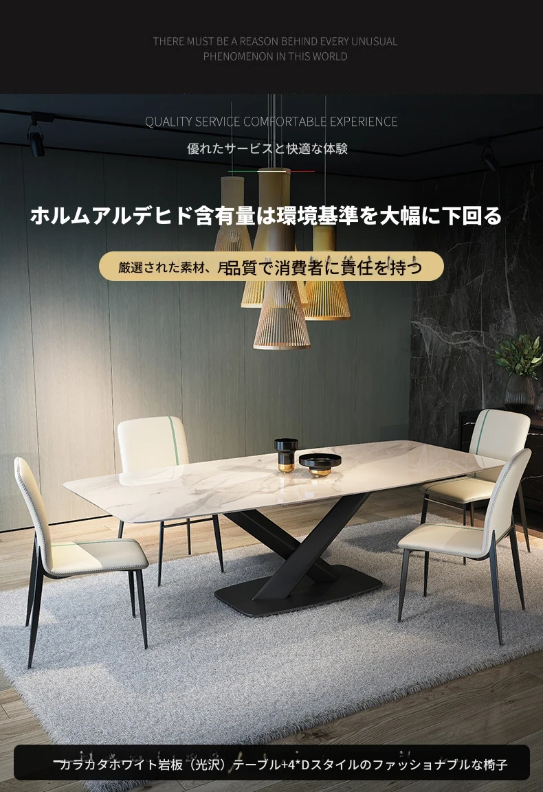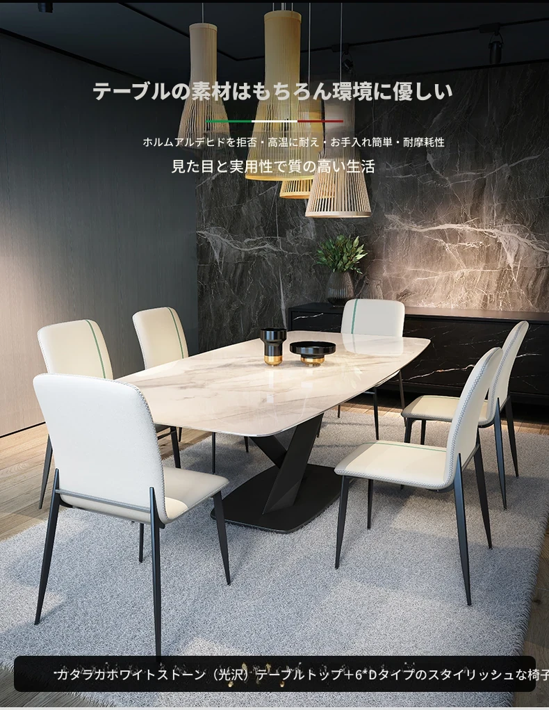 イタリアンミニマリズムの大理石ダイニングテーブルセット - 小さなスペースにも最適なシンプルでモダンな長方形デザイン。北欧スタイルの美しさを取り入れた、家族や友人と楽しむための理想的な食卓!