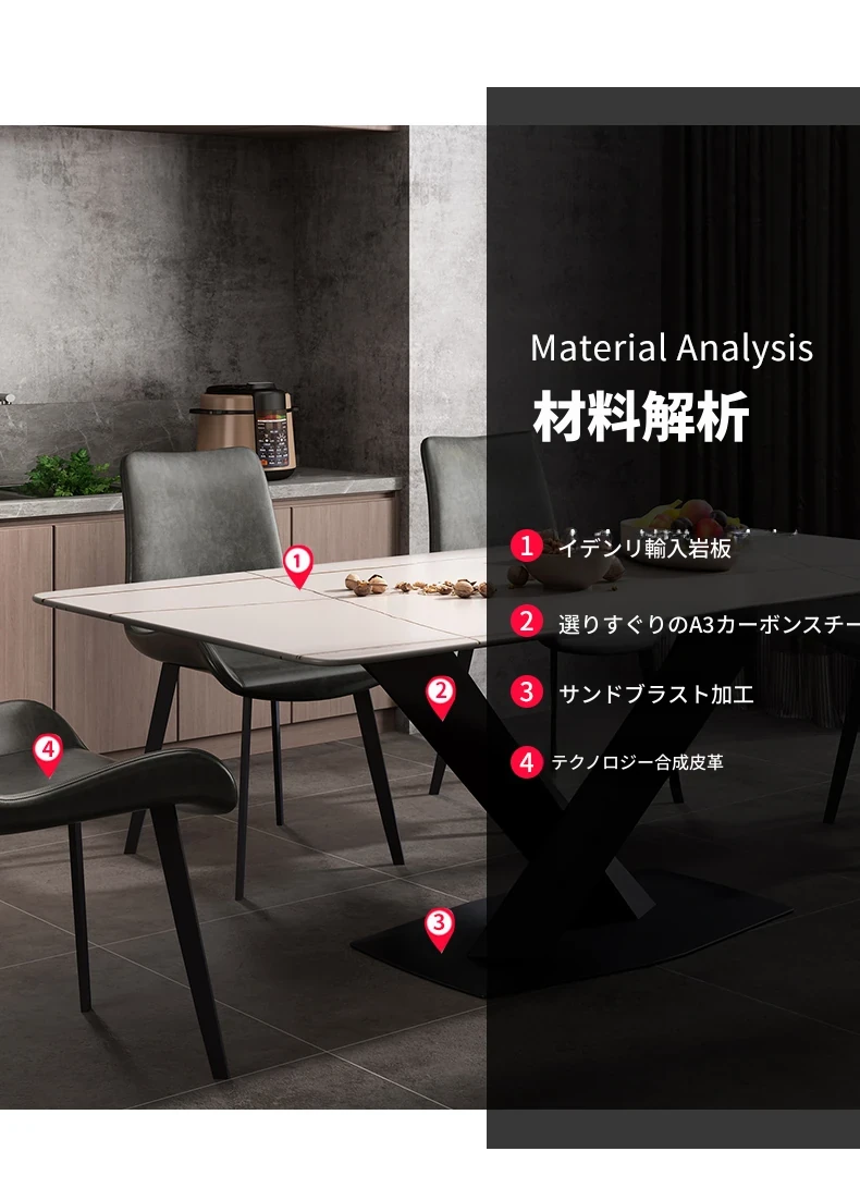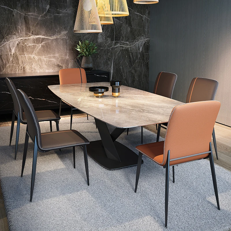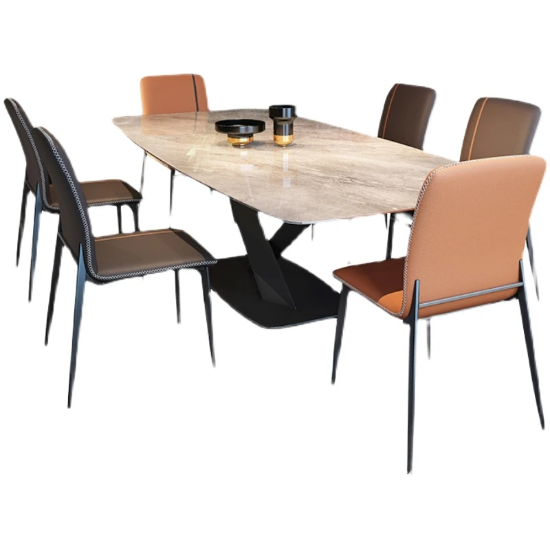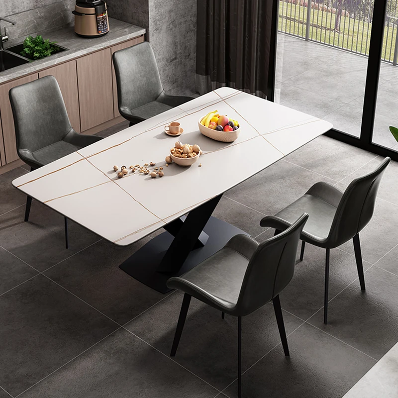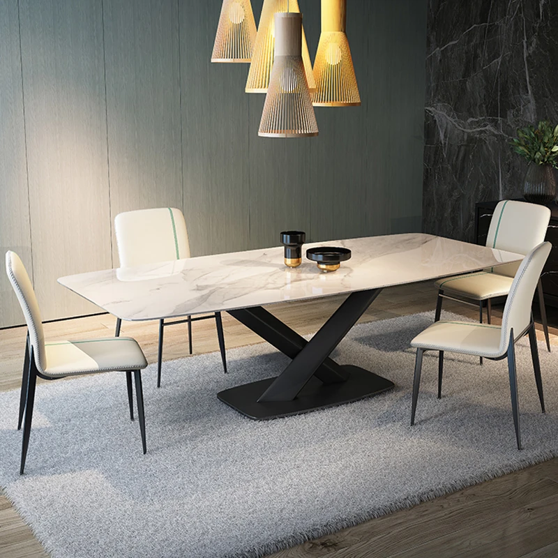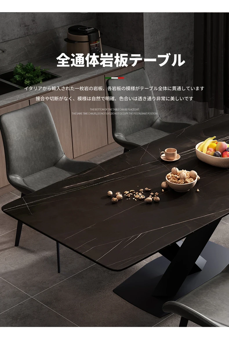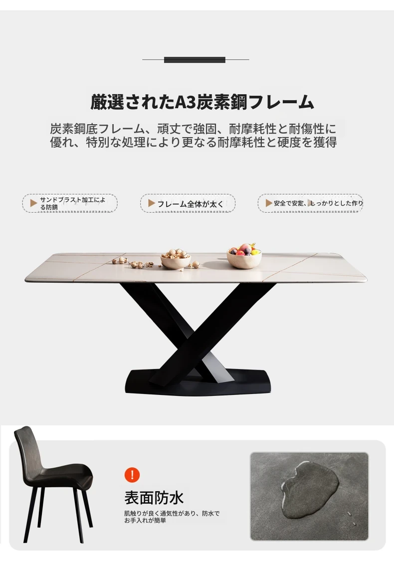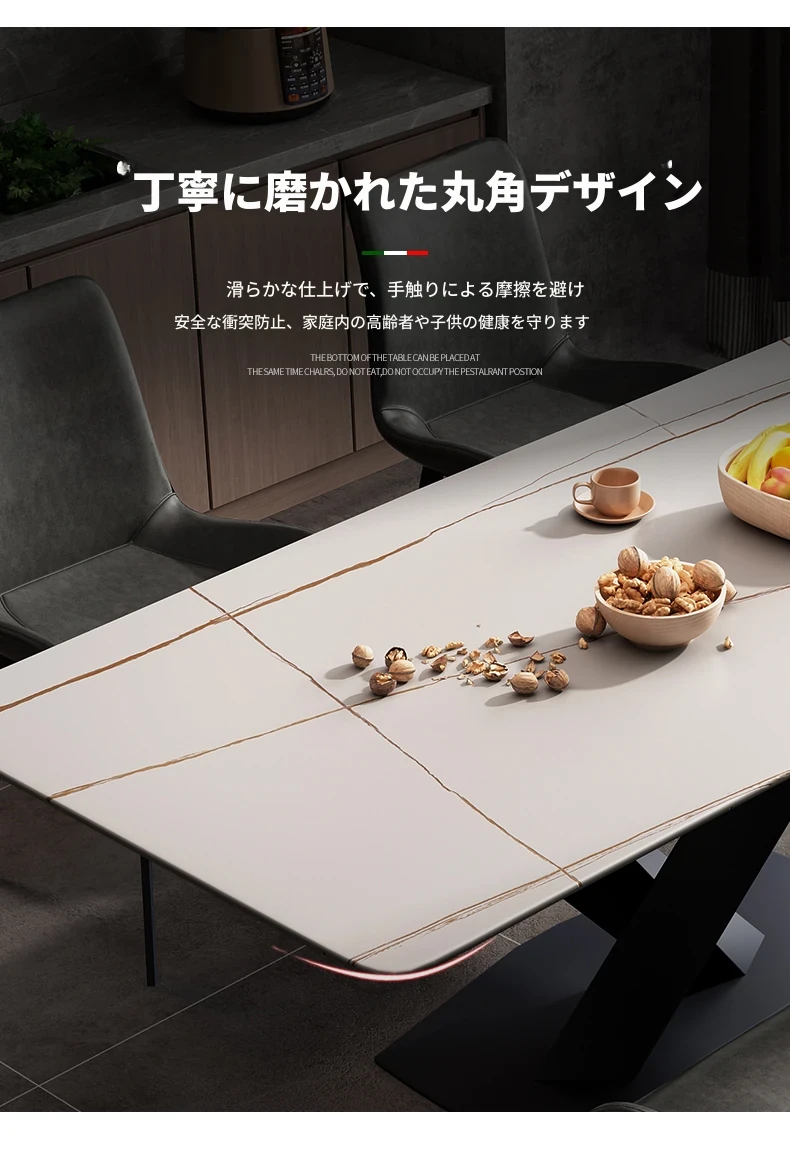 イタリアンミニマリズムの大理石ダイニングテーブルセット - 小さなスペースにも最適なシンプルでモダンな長方形デザイン。北欧スタイルの美しさを取り入れた、家族や友人と楽しむための理想的な食卓!